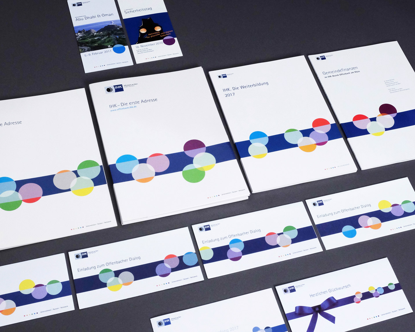 Unter der bundesweiten Dachmarke kommuniziert die Industrie- und Handelskammer Offenbach ihre Aktivitäten mit einer eigenen Identität. Unser Büro wurde mit der Entwicklung des neuen, variablen Keyvisuals sowie der Überarbeitung des visuellen Erscheinungsbilds beauftragt. Ein ausführliches Manual dokumentiert die Ergebnisse.