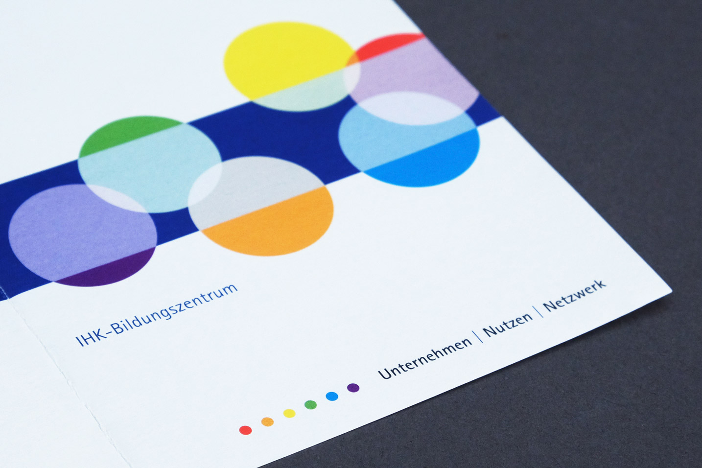 Die sechs Kreiselemente, die für einzelne Ressorts innerhalb der IHK stehen, finden sich im Claim ,Unternehmen | Nutzen | Netzwerk‘ wieder.